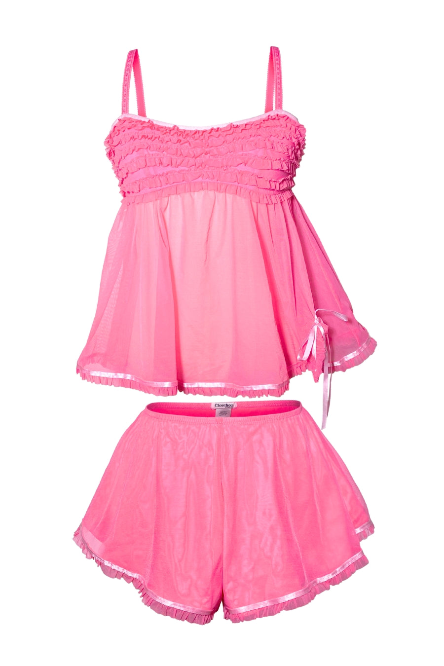 Available in Raspberry, a vibrant pink, and Buttercup, a creamy pastel yellow, Rosie features a babydoll-style cami and cheeky shorts trimmed with mesh ruffles and satin ribbons. Designed for comfortable, elegant loungewear that honours both relaxation and feminine ritual.