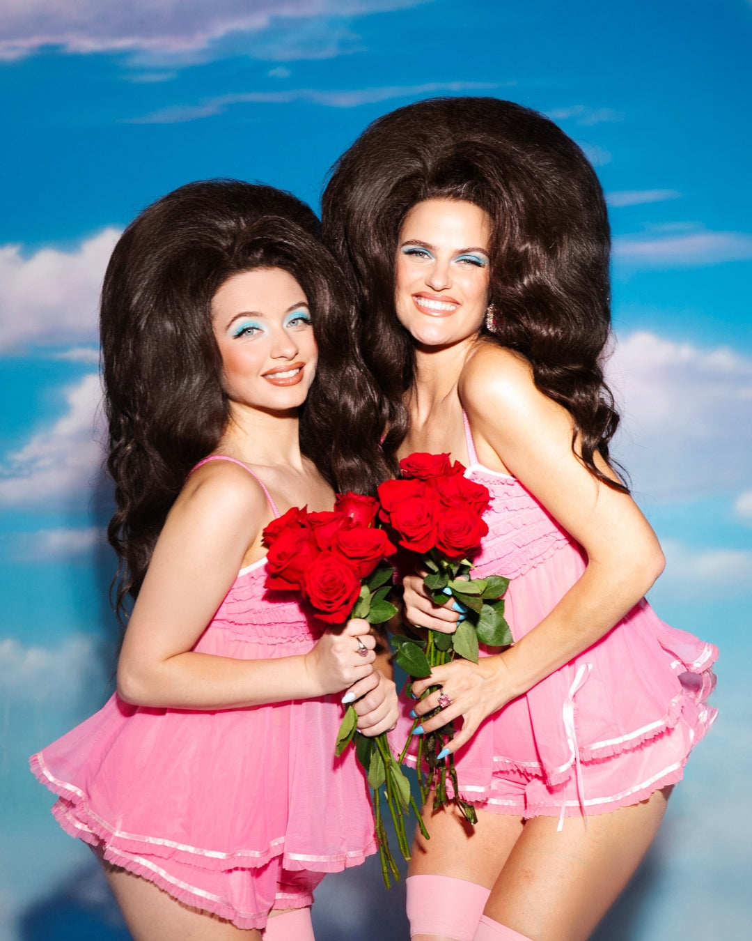 Lizzie is wearing Size M and Daia is wearing Size XS.